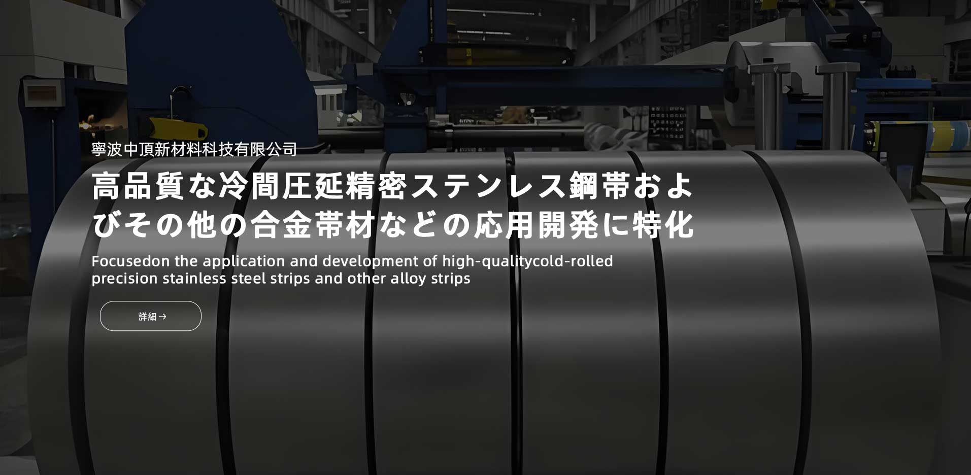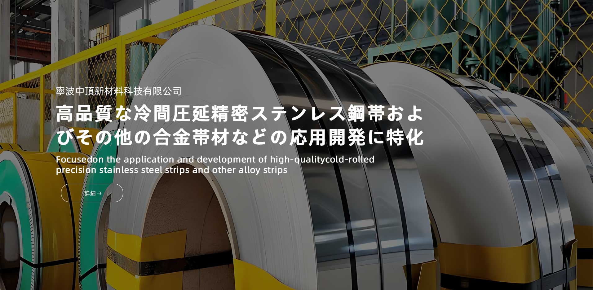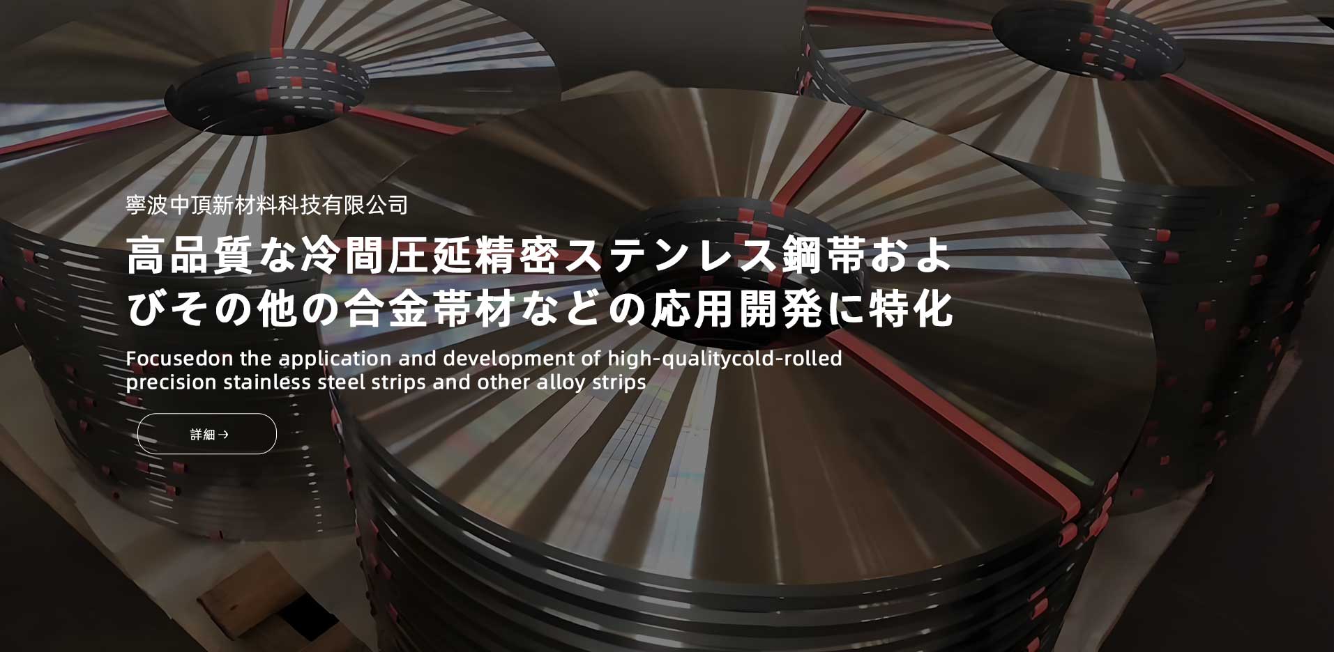 寧波中頂新材料科学技術有限公司は2020年に設立され、浙江省寧波奉化区に位置し、敷地面積は8000㎡に達した。創立以来、会社は高品質冷間圧延精密ステンレス鋼帯材及びその他の合金帯材などの応用開発に専念し、革新的な活力を持つハイテク企業である